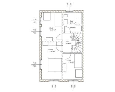 Das Dachgeschoss ist als Speicher vorgesehen, kann jedoch auch voll ausgebaut werden.