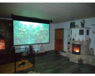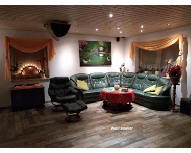 •EG: Wohnzimmer (mit Heimkino: versenkbare Leinwand und Beamer), Küche, 2 Räume, großes Badezimmer