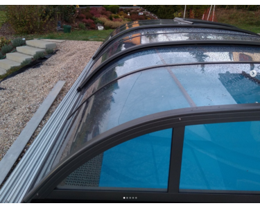 •Überdachter Salzwasserpool mit Gegenstromanlage