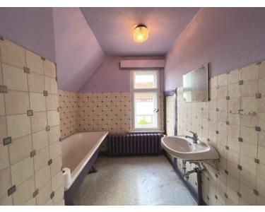 Das Einfamilienhaus wurde ca. 1924 in Massivbauweise errichtet und verfügt über eine Wohnfläche von ca. 125 m² auf einem Grundstück von 1.546 m². Im Erdgeschoss befinden sich der Eingangsbereich mit Zugang zum Flur, die Küche, ein kleines Badezimmer mit Dusche und ein großes Wohnzimmer. Außerdem gelangt man in den Keller und zur Terrasse auf dem Hinterhof. Das Dach ist größtenteils ein Satteldach mit Dachziegeln und das Dachgeschoss ist voll ausgebaut mit 3 Zimmern, wovon 1 Zimmer einen Erker mit Blick in den Garten hat. Außerdem finden wir im Dachgeschoss ein Badezimmer mit Badewanne. Das Haus ist vollständig unterkellert und gute Nutzflächen mit ca. 100 m² sind im Nebengelass vorhanden. Das Haus hat eine leichten Sanierungsstau und kann mit handwerklichem Geschick wieder im Glanz erstrahlen. Aktuell ist das Objekt bereits frei und es ist vollständig mit Strom, Gas, Wasser und Abwasser erschlossen.