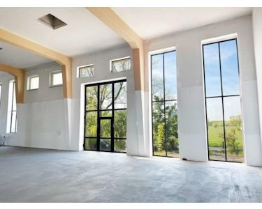 Drei großzügige Hallen mit über 1.000 m² Nutzfläche wurden in den letzten zwei Jahren entkernt, modernisiert und mit großen Fenster- sowie Glaselementen ausgestattet, was für helle Räume und einen offenen Blick ins Grüne sorgt.