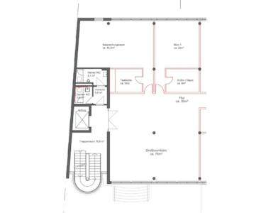 Wenn Sie Zeit haben oder eine individuelle Raumaufteilung benötigen - können Sie die 240m² im 1.OG anmieten und wir stellen es nach Ihren Wünschen her.