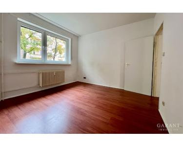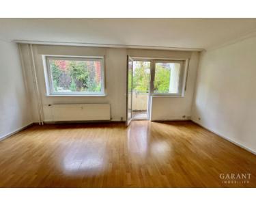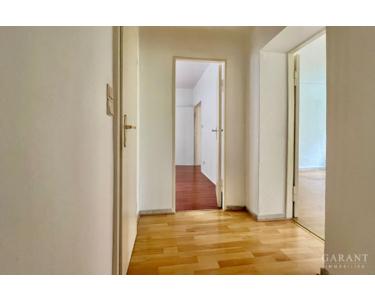 Die Wohnung bietet ein helles Wohnzimmer mit direktem Zugang zum Balkon, ein großzügiges Schlafzimmer, ein weiteres halbes Zimmer, das sich perfekt als Arbeits- oder Gästezimmer eignet, sowie einer separaten Küche mit Fenster. Das zweite und das halbe Zimmer sind nach vorne zur Straße ausgerichtet, welche eher als ruhig zu bezeichnen ist.