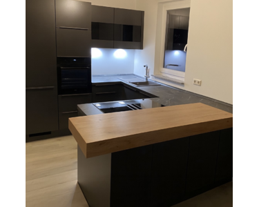 • Moderne Einbauküche mit Induktionsherd inklusive integriertem Muldenlüfter & hochwertigen Elektrogeräten