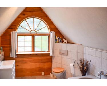 Im Erdgeschoss befinden sich ein Schlafzimmer sowie ein Gäste-WC mit Dusche – praktisch und komfortabel zugleich. Im Obergeschoss erwarten Sie zwei weitere, helle Zimmer und ein geräumiges lichtdurchflutetes Badezimmer.