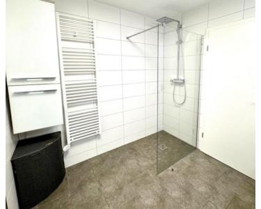 Wellness: Geräumiges modernes Wellnessbad mit Tageslicht, bodengleicher Dusche und Handtuchheizkörper, drei WCs auf zwei Ebenen