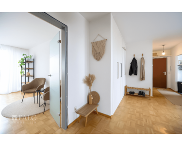 Diese charmante Wohnung im 8. Stock eines Mehrfamilienhauses in Ramersdorf-Perlach kann bequem mit dem Aufzug erreicht werden und bietet dank ihrer erhöhten Lage einen traumhaften Weitblick bis zu den Alpen. Beim Betreten des Eingangsbereichs eröffnet sich die offene Diele, welche in die rund 78 m² große Wohnung einlädt.
