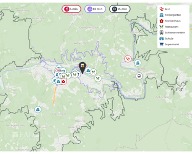 Für den täglichen Bedarf sind Supermärkte wie REWE und Lidl bequem zu Fuß erreichbar. Auch für die Kleinen ist gesorgt: Ein Kindergarten und mehrere Spielplätze befinden sich in der Nähe, was die Umgebung besonders familienfreundlich macht. Schulen aller Bildungsstufen sind ebenfalls gut erreichbar, was den Standort für Familien mit Kindern besonders attraktiv macht.