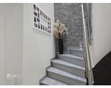 Über eine stilvolle Treppe gelangen Sie in das Obergeschoss, wo sich das Hauptschlafzimmer mit einem geräumigen Kleiderschrank befindet. Zwei weitere Zimmer bieten flexible Nutzungsmöglichkeiten, sei es als Kinderzimmer, Büro oder Gästezimmer. Das große Badezimmer auf dieser Etage ist mit modernen Armaturen und einer komfortablen Dusche und Badewanne ausgestattet. Zudem stehen Ihnen zwei separate Waschtische zur Verfügung.