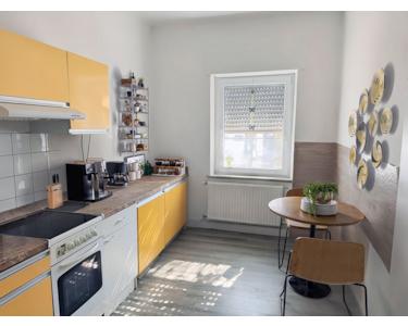2. Obergeschoss (ca. 54 m² Wohnfläche): Zwei Zimmer, Küche, Flur, Bad