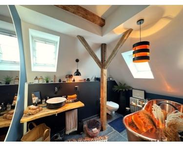 Bad im Dachgeschoss mit freistehender Kupferbadewanne