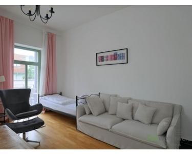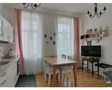 ### Please note the availability date! Bitte das Verfügbarkeitsdatum beachten! ### möblierte helle Wohnung mit Balkon im 1. Obergeschoss, zentrumsnahe Wohnlage; helles Wohnzimmer mit Couch, Esstisch, Küchenzeile und Ausgang zum sonnigen Balkon; Schlafzimmer mit Doppelbett; Bad mit Dusche, Wanne und WC; kleiner Wohnungsflur; WLAN und PKW-Stellplatz; Endreinigung Mietersache; Pauschalmiete 1.370,00 Euro bei 1 Person; wird an max. 3 Personen vermietet; Kaution 1.800,00 Euro; Mindestmietdauer 3 Monate; Pflichtangaben zum Energieausweis: Energieausweis gültig bis: 14.03.2034; Baujahr Gebäude: 1900; Energieausweis: nach Verbrauch; Energieverbrauch: 92.6 kWh/(m²a); Energieeffizienzklasse: C; Primärer Energieträger: Erdgas H