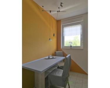 ### Please note the availability date! Bitte das Verfügbarkeitsdatum beachten! ### moderne Maissonette-Wohnung mit Tiefgarage und Aufzug; großer Wohnraum mit Eckcouch, Deko-Kamin und TV; großer überdachter Balkon; Innentreppe zum Dachbereich mit Doppelbett und Kleiderschrank; separate Küche mit EBK und Esstisch; Bad mit Wanne und WC; Wohnungsflur mit Garderobe; keine Waschmaschine vorhanden, kann jedoch mieterseits aufgestellt werden; vermieterseits ist kein Internet vorhanden; Pauschalmiete 660,00 Euro bei 1 Person; bei max. 2 Personen 60,00 Euro Aufpreis; ein TG-Stellplatz im Haus kann für 40,00 Euro angemietet werden; Kaution 800,00 Euro; Mindestmietdauer 3 Monate; Pflichtangaben zum Energieausweis: Energieausweis gültig bis: 07.11.2027; Baujahr Gebäude: 1996; Energieausweis: nach Verbrauch; Energieverbrauch: 87.0 kWh/(m²a); Energieeffizienzklasse: C; Primärer Energieträger: Gas