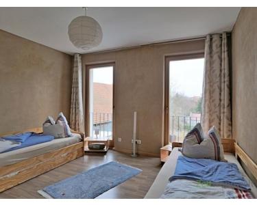 ### Please note the availability date! Bitte das Verfügbarkeitsdatum beachten! ### moderne möblierte Etagenwohnung mit Lehmwänden und Wandheizung nahe der Erfurter Innenstadt; WLAN, Wäschewechsel und Grundreinigung inklusive; Waschmaschine vorhanden; großes Wohnzimmer mit bodentiefen Fenstern, Holzböden; Eckcouch, TV und Esstisch; rechtes Schlafzimmer mit Doppelbett und Kleiderschrank; linkes Schlafzimmer mit 2 Einzelbetten und Kleiderschrank; Wohnküche, Bad mit Dusche, WC und Waschmaschine; Pauschalmiete 1.450,00,00 Euro bei 1 Person; wird an max. 4 Personen vermietet; Kaution 2.000,00 Euro; Mindestmietdauer 3 Monate; Endreinigung Mietersache; Pflichtangaben zum Energieausweis: Energieausweis gültig bis: 15.12.2031; Baujahr Gebäude: 2016; Energieausweis: nach Verbrauch; Energieverbrauch: 41.9 kWh/(m²a); Energieeffizienzklasse: A; Primärer Energieträger: Erdgas