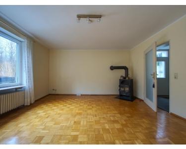 Das nach Süden ausgerichtete Wohnzimmer ist mit einem Parkettboden ausgestattet und verfügt über einen Kaminanschluss.