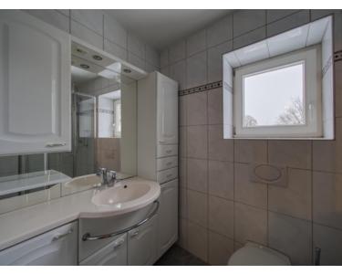 Im Obergeschoß befinden sich das Schlafzimmer, das Kinder- oder Arbeitszimmer sowie ein Badezimmer mit Dusche, Waschtisch und WC.