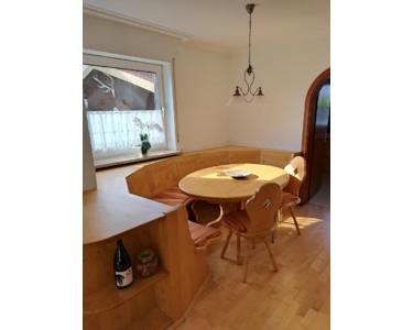 Die Doppelhaushälfte wurde 1982 in solider Ziegelbauweise auf einem real geteilten Grundstück erstellt. Der Schnitt des Hauses ist optimal aufgeteilt. Das Wohnzimmer ist hell und großzügig und zum Essbereich mit maßgefertigten hellen Holzeinbauten offen und mit Parkettboden ausgestattet. Direkt daran schließt sich die Küche an, die mit einer Einbauküche aus hellem Holz ausgestattet ist. Im Obergeschoss befinden sich 3 Schlafräume, alle mit Ahorn Laminatboden verlegt und das Badezimmer mit Whirlpool. Das Dachgeschoss wurde als Büro genutzt.