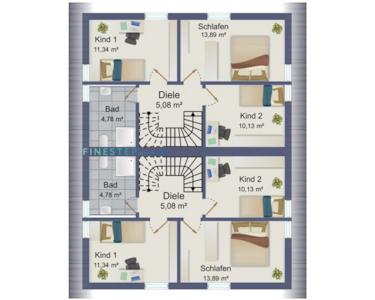 Im Dachgeschoss befinden sich drei gut geschnittene Zimmer, flexibel nutzbar als Schlaf-, Kinder- oder Arbeitszimmer. Ein helles Tageslichtbad mit hochwertiger Ausstattung komplettiert die Etage. Große Fensterflächen, eine durchdachte Planung und die ruhige Lage schaffen ein Wohnumfeld mit hoher Aufenthaltsqualität.