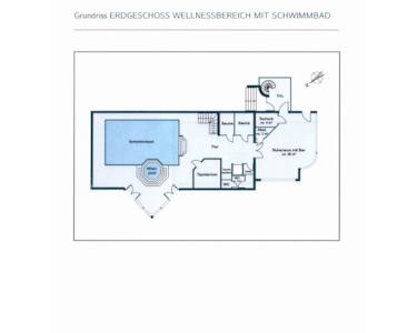 Angeschlossen an das Hauptgebäude ist der Wellnessbereich. An einer großzügigen Bar in dem davor gelagerten HiFi-Raum, können Sie Ihren Lieblingsfilm anschauen. Wählen Sie dann, ob Sie Ihren Feierabend im Saunabereich (Nass oder Trocken) oder im großzügigen Schwimmbad verbringen möchten. Natürlich steht Ihnen zum Bräunen oder Durchwärmen ein separater Bereich zur Verfügung.