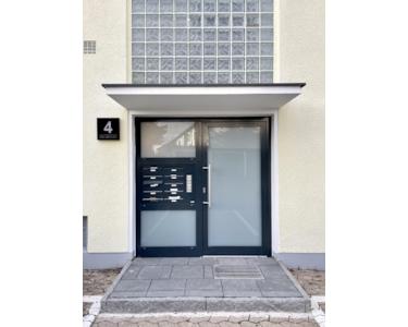 Neue Haustüranlage: Die alte Haustüranlage wurde durch eine moderne Anlage mit neuem Briefkasten und Klingelanlage ersetzt, zudem wurde der Eingangsbereich erneuert.