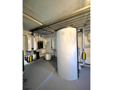 Neue Hybridheizung: Die veraltete Ölheizung wurde durch eine moderne Hybridheizung aus Wärmepumpe und Gasbrennwerttherme ersetzt, inklusive Austausch sämtlicher Heizkörper.