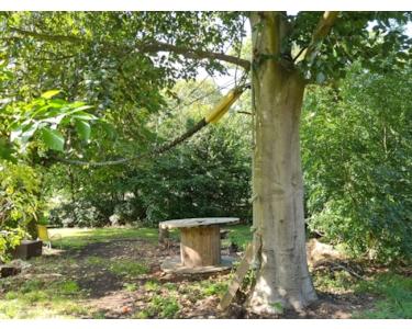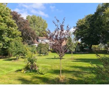 Das Grundstück verfügt über einen umfangreichen Baumbestand, ist vollständig eingezäunt und bietet einen unverbaubaren Blick über Grünland.