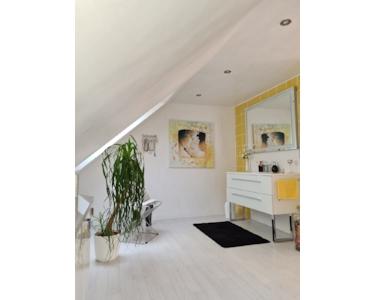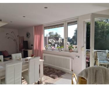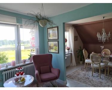Die untere Wohnung zeichnet sich durch großzügig geschnittene Räumlichkeiten mit einer Deckenhöhe von 2,85 m aus. Im Dachgeschoss beeindruckt die Wohnung mit viel Lichteinfall und Weitblick in die Landschaft.