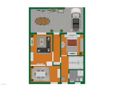 Der Eingangsbereich befindet sich direkt neben der Terrasse und führt in einen zentralen Flur. A...