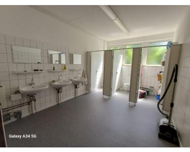 1xSanitärraum ca. 16,5qm, mit 3 Toiletten und 3 Waschbecken