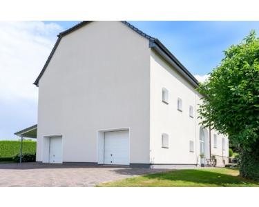 Zwei integrierte Garagen mit Sektionaltoren, ein Teilkeller sowie der große Garten ergänzen das Gesamtbild dieser besonderen Immobilie.