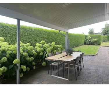 Schon beim Betreten der großen, hellen Deele spürt man die besondere Atmosphäre des Hauses. Sie bildet das Herzstück der Immobilie und öffnet sich zu beiden Seiten auf Terrassen, eine davon überdacht und ideal für gesellige Abende oder entspannte Stunden im Freien.