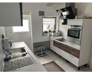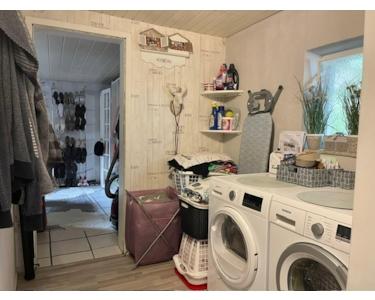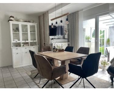 Die Aufteilung und Ausstattung ergibt sie wie folgt: heller Eingangsbereich bzw. Diele, ein hübsches Gäste-WC, ein schönes und helles Wohnzimmer mit bodentiefen Fensterflächen, ein großzügiges Esszimmer mit Ausgang in den nachträglich angebauten Wintergarten, ein großzügiges Schlafzimmer, ein helles und modernes Badezimmer mit Glasdusche, Waschtisch und WC sowie eine große, auf versetzter Ebene befindliche Küche mit angrenzendem Hauswirtschaftsraum (hier befinden sich die Anschlüsse für Waschmaschine und Trockner). Von der Küche aus gelangt man in den wunderschönen Garten. Neben dem Hauswirtschaftsraum gelangt man in die ehemalige Stallung, in der sich heute nach Umbau ein weiterer Raum, der als Ankleide bzw. Büro genutzt wird -befindet.