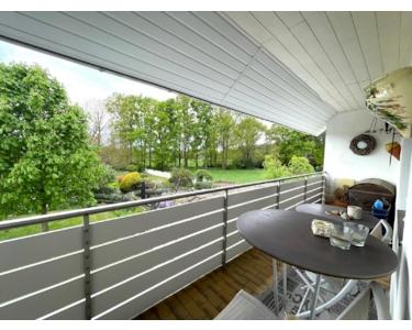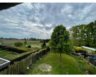 Ländliche Wohnlage mit Blick auf Felder und Wiesen.