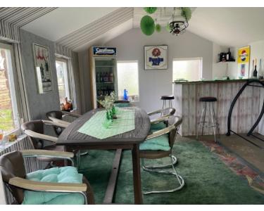 großzügige und helle Gartenhütte als Partyraum mit Theke und separater Toilette