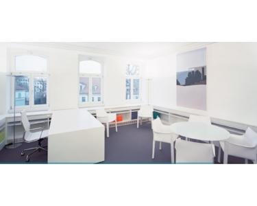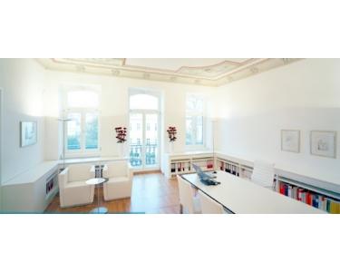 "Reflexe der Moderne" - Unter Wahrung der gleichförmigen Fassadenstruktur mit ihren flachen Risaliten und der kraftvollen Attika wurde das Objekt hochwertig saniert. Die Rationalität der Struktur spiegelt sich in der inneren Neuorganisation des Gebäudes wieder.