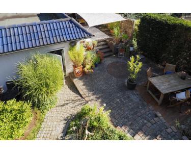 Das Grundstück ist üppig eingewachsen, nicht einsehbar und bietet mit liebevoll angelegten Terrassen, Wegen und Sitzplätzen eine Atmosphäre voller Idylle und Charme.