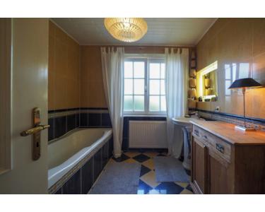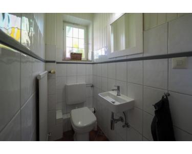 Das Tageslichtbad verfügt über Wanne, Dusche, WC und Waschtisch. Im Eingangsbereich befindet sich zusätzlich ein Gäste-WC.