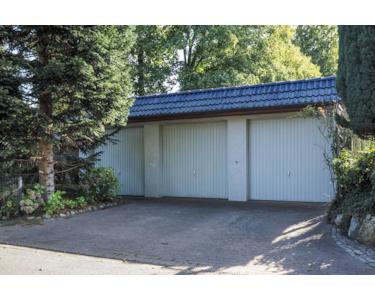 Zur Ausstattung gehören eine Doppelgarage mit Platz für zwei Fahrzeuge, Montagegrube und Werkbankbereich sowie eine zusätzliche Garage, unterteilt in Zweiradgarage und Gartengeräteraum. Hier befindet sich auch die Schwimmbadtechnik für den stillgelegten Pool, der derzeit mit einem Terrassendeck überbaut ist.