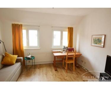 Diese Wohnung liegt in der 3. Etage eines Mehrfamilienhauses. Alle Räume gehen vom zentral liegenden Flur ab. Vom sehr gemütlichen Wohnzimmer mit einem Esstisch für 4 Personen gelangt man auf den Kleinen Balkon. Die moderne Küche ist voll ausgestattet. Das Schlafzimmer verfügt über ein Doppelbett und einen Schrank mit viel Platz. Komplettiert wird die Wohnung duch ein Gästezimmer, dass auch als Arbeitszimmer genutzt werden kann. Die Wohnung ist für 1 Person oder ein Paar geeignet. Bei Belegung mit 2 Personen beträgt die Miete 1.099,00 €/Monat