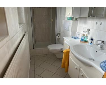 Einfamilienhaus mit Einliegerwohnung, Vollkeller und Garage mit vorgelagerter Terrasse und Markise, ca. 122 m² Wohnfläche zzgl. ca. 69 m² Nutzfläche im Keller, 5,5 Zimmer, 3 Bäder, 2 Küchen, gr. Terrasse am Wohnzimmer. Die Fenster sind teilweise mit Außenrollladen ausgestattet. Gartengerätehaus.