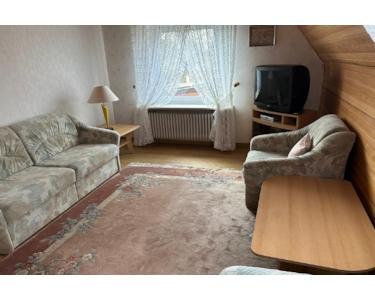 Die Räumlichkeiten im Dachgeschoss beinhalten einen Flur, Duschbad mit WC, Wohnzimmer, Schlafzimmer, Kinderzimmer (unter 10 m² groß) sowie eine Küche mit älterer Küchenzeile.