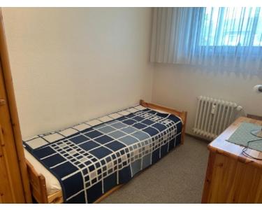 Die Wohnung verfügt über einen Flur mit Garderobe, Schlafzimmer mit 2 Einzelbetten, Bad mit Runddusche, wandhängendem WC, Handtuchheizkörper, Waschmaschinenanschluss und Einbauschrank versehen, Wohn-, Ess- und Schlafzimmer, ausgestattet mit einer offenen Pantryküche und einem Schrankdoppelbett, Zugang zur großen Loggia in S/O-Lage.