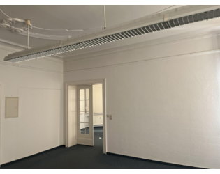 Die Büroeinheit im Erdgeschoss verfügt über eine Fläche von 98,92 m², aufgeteilt auf drei Büroräume, eine Küche sowie einen Abstellraum. Auf der Etage sind getrennte WC vorhanden. Die großzügigen Räume verfügen über hohe Decken mit Stuckverzierungen und schaffen dadurch eine stilvolle und angenehme Arbeitsatmosphäre.