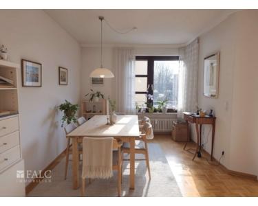 Das Herz der Wohnung bildet das Wohn-/Esszimmer, das durch die Helligkeit und seinen Zugang zum Südwest-Balkon besticht. Hier genießen Sie angenehme Sonnenstunden und einen Ausblick ins Grüne, welcher Erholung verspricht. Das Parkett in den Räumen sorgt für eine angenehme Wohnqualität. Die Küche ist mit einer Einbauküche ausgestattet und gefliest.