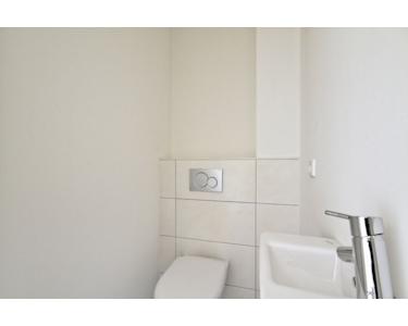 Das Vollbad hat neben modernen Sanitärelementen geschmackvolle Wand- und Bodenfliesen. Ein Handtuchheizkörper und ein Waschmaschinenanschluss vervollständigen den positiven Gesamteindruck. Ein weiteres Highlight: Das Badezimmer verfügt über einen Sichtschacht für Tageslicht, der die Hochwertigkeit der Innenausstattung unterstreicht. Für Gäste steht ein separates WC zur Verfügung, das das attraktive Design des Badezimmers widerspiegelt.