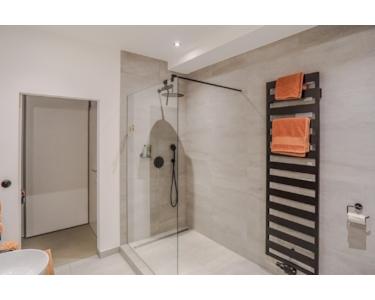 - Badezimmer (2023 renoviert) mit Walk-in-Regendusche, Badewanne und hochwertigen Fliesen