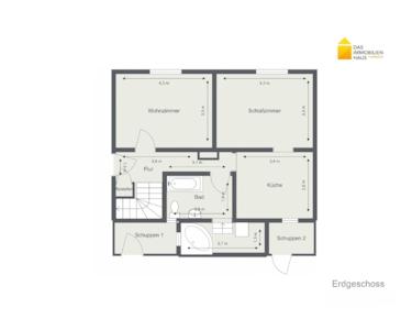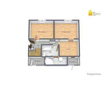 Erdgeschoss: Flur inkl. Treppenhaus, Wohnzimmer, Bad, Küche, Schlafzimmer