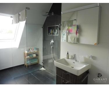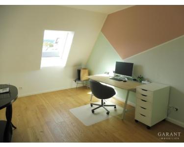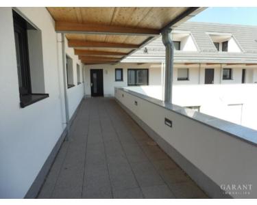 Die Maisonettewohnung wurde Ende 2015 bezogen (Erstbezug) und befindet sich in einem Neubau mit 22 Wohnungen. Zur Wohnung gehört ein Pkw-Stellplatz in der Tiefgarage mit kleinem Abstellraum und einer Wallbox, welche unmittelbar an den Stellplatz angrenzen. Ein Kellerraum ist ebenfalls vorhanden. Mit dem Aufzug gelangt man in das 3. Obergeschoss und über den Laubengang zur Wohnung. Die sehr großzügig gestaltete Wohnung umfasst im unteren Bereich den Wohnungseingang mit offener Wohnküche. Daran schließt sich der Wohnzimmerbereich mit Zugang zur Loggia an, welche sich nach Süden öffnet und den Blick auf die Karlshöhe ermöglicht. Über den Flur erreicht man dann das Arbeitszimmer, das Bad mit Badewanne, das Schlafzimmer und den Hauswirtschaftsraum. Zwischen Wohnküche und Wohnzimmer gelegen, befindet sich die Treppe zum Obergeschoss, welche auf der Galerie endet. Von hier kann man direkt auf die Dachterrasse treten und die morgendliche Sonne bei Gymnastik oder/und Frühstück genießen. Eine Ankleide und das Bad mit Dusche schließen sich unmittelbar an die Galerie an. Eine vom Eigentümer eingebaute raumhohe Spiegelschiebetür trennt die Ankleide vom Schlafzimmer. Von hier ist ein direkter Zugang zur Dachterrasse möglich.
