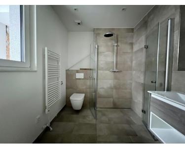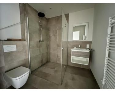 - stilvoll eingerichtetes Bad mit Dusche, WC und Waschtischunterschrank