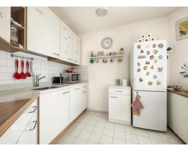 Die Küche ist geschickt in den Wohnbereich integriert und bietet alle notwendigen Anschlüsse für moderne Küchengeräte. Die Anordnung der Küche ermöglicht es, den Raum optimal zu nutzen und gleichzeitig eine angenehme Atmosphäre zu schaffen, in der Sie Ihre kulinarischen Fähigkeiten entfalten können.